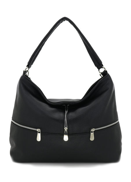 BOLSO C/MANIJA PLIEGUES Y VARIOS CIERRES METALIZADOS AL FRENTE